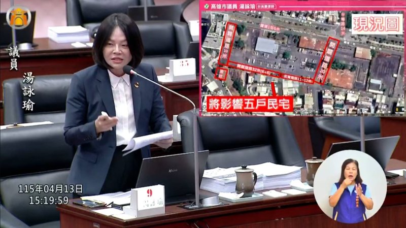 【漾新聞記者陳雯萍/高雄報導】高雄市議會今(13)日進行高雄市都市計畫委員會業務報告與質詢,議場火藥味濃厚。擁有台美雙律師身分,問政一向理性專業的高雄市議員湯詠瑜,今天相當罕見的動怒。她是針對苓雅區「機11」都市計畫變更及安康路20巷道路開闢案提出質詢,強調該案涉及5戶合法建物拆遷,要求市府審慎檢討路線與開闢必要性。不料在答詢過程中,副市長林欽榮一句回應引發誤解,讓湯詠瑜認為遭影射為「關說」,當場情緒激動反擊,議場一度陷入緊張對峙。