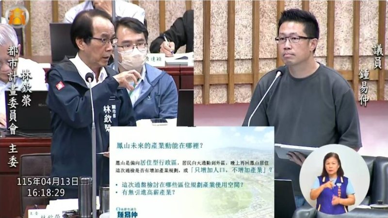 鍾易仲進一步指出,鳳山平均家戶所得約100萬元,不僅低於新竹市約150萬元,也不及基隆市與宜蘭縣約110萬元的水準,顯示人口規模與經濟發展存在落差。他呼籲市府應在都市計畫中規劃產業用地,引進具發展潛力的產業,讓居民能在地就業、在地生活,打造真正完整的城市機能。