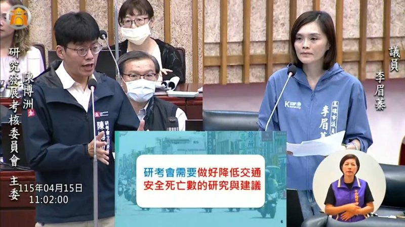 對於陳柏洲提及的A30死亡數與醫療量能相關,李眉蓁當場追問,是否意味交通死亡偏高是醫療後送沒做好,而非道路設計本身有問題。她強調,道路風險與醫療量能固然都重要,但不能因此模糊焦點,高雄許多高風險路段與大型車、機車混流問題密切相關,尤其小港、機場周邊與重工業密集區域,大貨車頻繁進出,道路安全早已不容忽視。