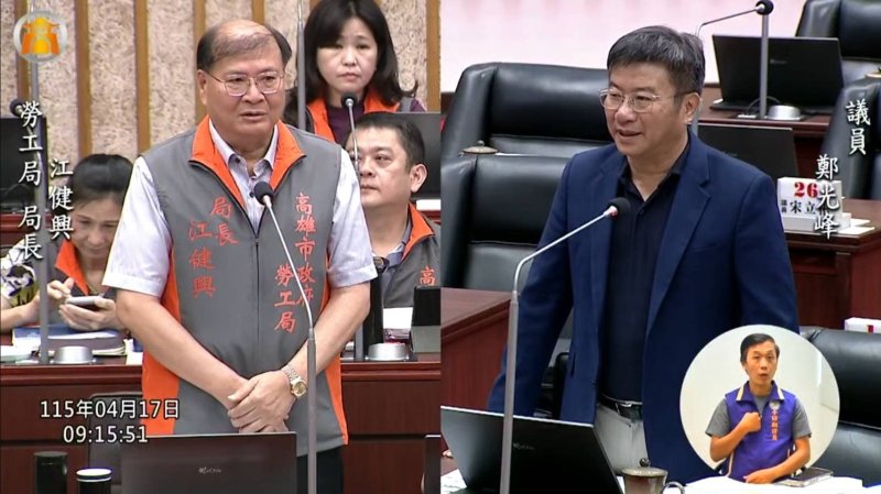 在回答鄭光峰議員質詢勞運出身的江健興,今年的五一勞動節,是否會出席勞運運動?江健興回答願意與勞工站在一起,讓鄭光峰相當肯定。