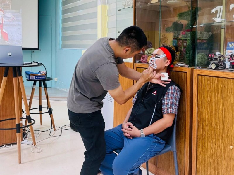 在指導老師與講師的帶領下,來自不同文化背景的學生實際參與臉譜創作,透過親手描繪,將課堂所學轉化為具體作品。越南與日本學生在交流過程中,也分享各自文化中的傳統符號與宗教意象,使課堂不僅是單向的文化輸出,更成為多元文化交會與對話的平台。