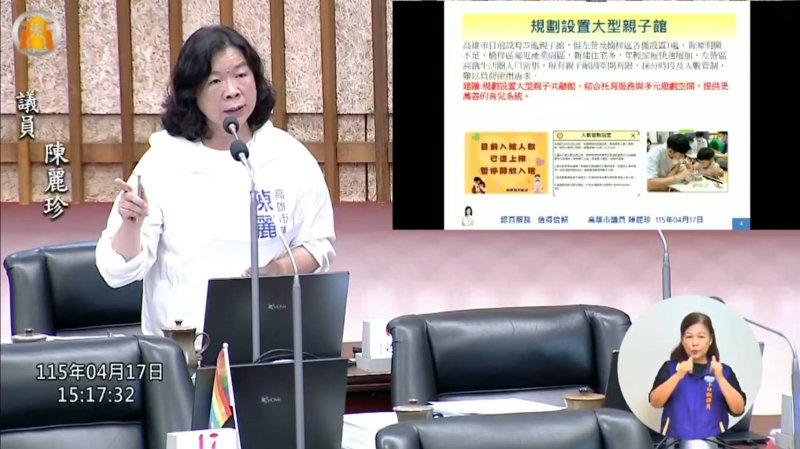 【漾新聞記者陳雯萍/高雄報導】高雄市議會社政部門質詢今(17)日持續聚焦育兒友善政策,高雄市議員陳麗珍針對左營、楠梓地區公共托育中心與大型親子館設置不足問題提出質詢,指出隨著北高雄人口持續移入、年輕家庭快速增加,現有托育與親子活動空間已明顯不敷使用,要求高雄市政府社會局加快盤點學校閒置教室及其他可用場域,儘速增設社區化公托與大型親子館,回應基層家庭迫切需求。
