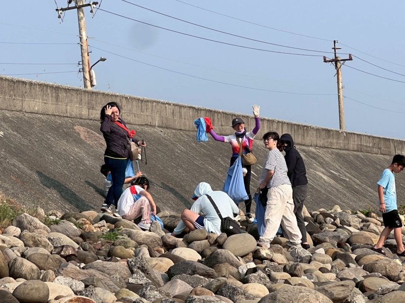 活動現場氣氛熱烈,志工們分組沿海岸線推進,在烈日與海風中彎腰撿拾垃圾、接力分類,將散落在石灘與消波塊間的塑膠、瓶罐與廢棄物逐一清理。從青年學子到社區長者,從親子家庭到校友團體,每一雙手都投入其中,讓「用行動守護海洋」不再只是口號,而是此刻最真實的風景。