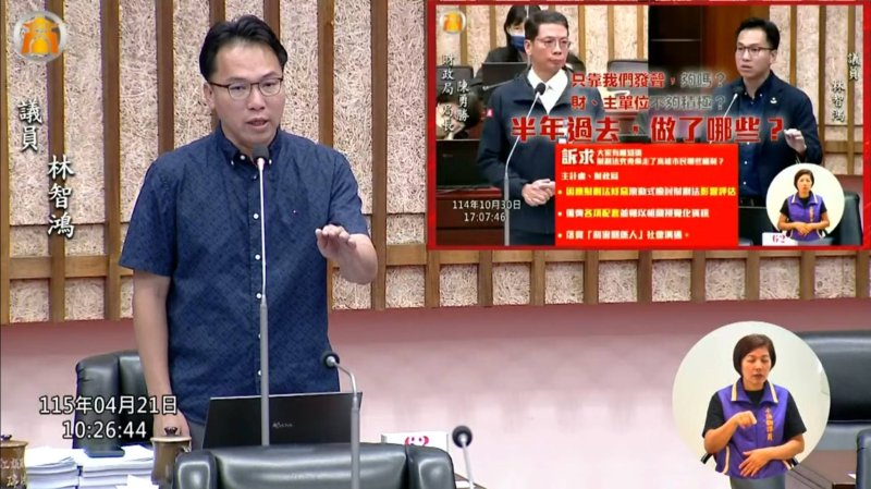 質詢過程中,林智鴻要求高雄市政府財政局與主計處應立即啟動滾動式影響評估,針對財劃法修正後的實際衝擊進行全面檢視,並透過數據分析與視覺化呈現,向市民清楚說明財政變化及其影響,強化公共溝通與政策透明度。