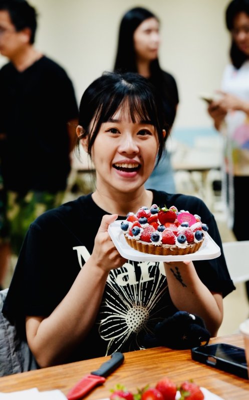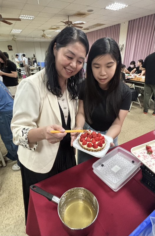 家長程照螢分享,能在忙碌生活中參與這樣的課程,感到十分幸福,不僅學習到甜點技巧,更能將親手製作的草莓塔帶回家與家人分享,意義格外深刻。志工家長許乃芸也笑說,這段時光不僅是甜點製作,更是「莓」好的放鬆療癒時刻,讓身心都得到釋放。