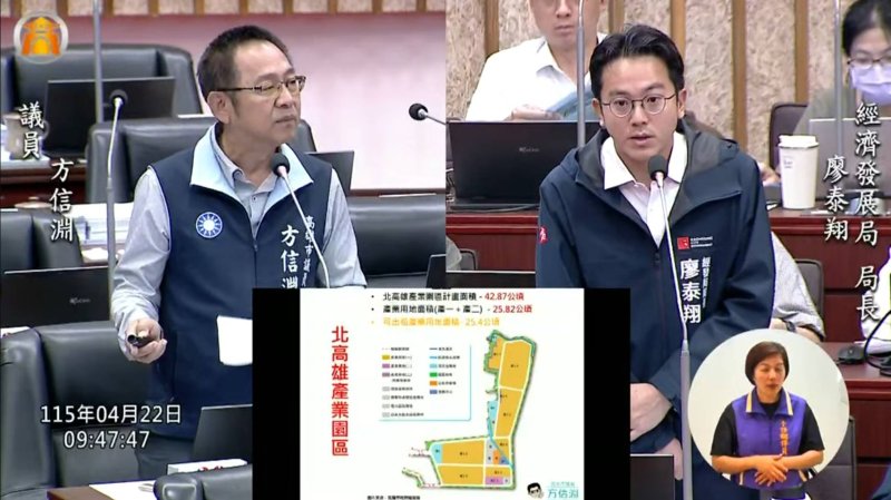 【漾新聞記者陳雯萍/高雄報導】高雄市議會今(22)日進行財政部門第二天的業務質詢,市議員方信淵聚焦北高雄產業發展命脈,針對白埔產業園區開發進度、招商狀況與聯外交通瓶頸提出連番質疑,直指園區雖已完成都計變更與細部計畫生效,市府也宣示今年中將動工,但到現在仍未明確說清楚有哪些指標廠商將進駐,聯外60米道路也未見具體進展,憂心若「園區先做、交通落後、招商未定」,恐讓北高雄半導體S廊帶重要拼圖失速。