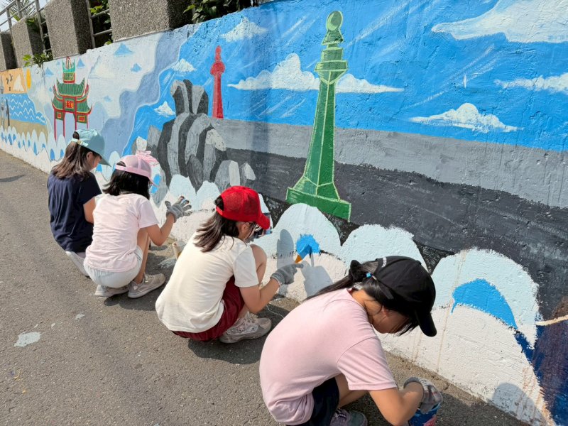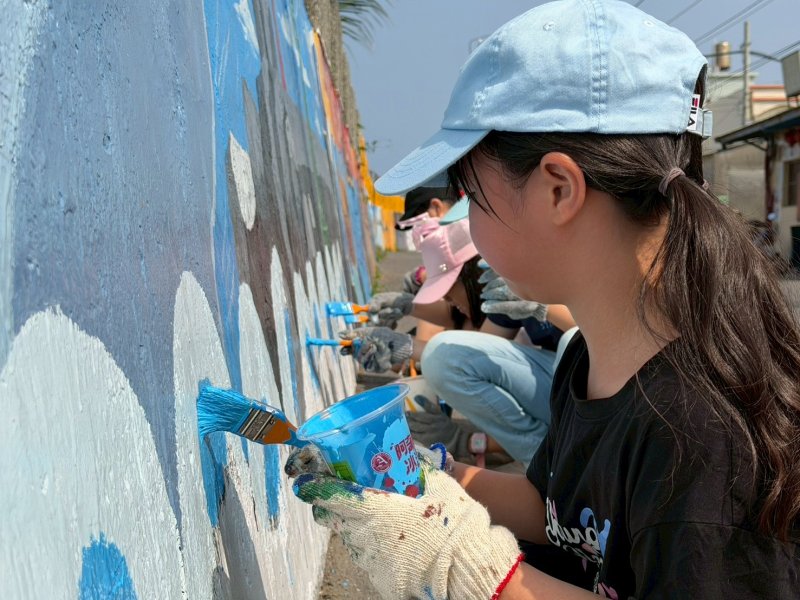 學生的創意同樣為牆面注入活力,王佐宇興奮表示,能在校外牆面作畫非常新鮮,透過海洋生物創作讓更多人看見蚵仔寮之美;林宥宇則結合世界地球日主題「Our Power, Our Planet」,將SDGs理念融入畫面,展現守護海洋環境的意識與行動。