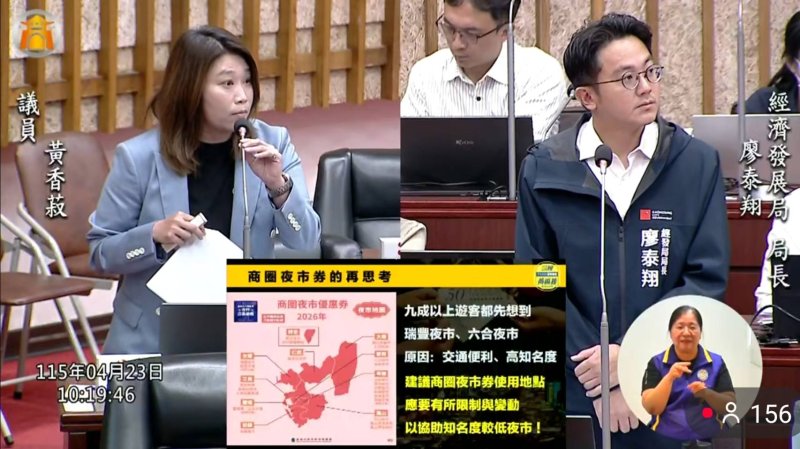 黃香菽則明確要求,既然議會當初未刪除預算,就是期待經發局提出更聰明、更精準的發放策略。她說,若民眾本來就會去瑞豐夜市,不會因為多了50元夜市券才改變行程;但對較弱勢的夜市來說,這50元可能就是帶動人流的關鍵。她要求經發局從「雨露均霑」角度重新設計商圈夜市券,讓資源真正發揮扶弱功能。