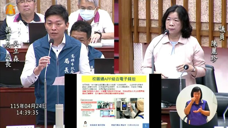 陳麗珍也關心「校園通APP」與學生證功能整合,建議結合電子錢包、一卡通、圖書館借書及弱勢學生補助。她指出,若能將弱勢學生每月補助或食物券轉入學生證,孩子到超商兌換餐食時不必拿紙本券,可兼顧便利與尊嚴。