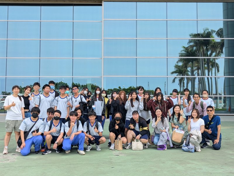 活動以沉浸式學習為主軸,上午在高雄展覽館展開國際接待情境體驗,學生跟隨導覽動線,以英文進行場館介紹與互動交流,在開闊的展場空間中感受會展產業的專業氛圍。從語言表達到臨場應對,每一步都貼近實務需求,也讓學生在真實環境中建立自信與成就感。