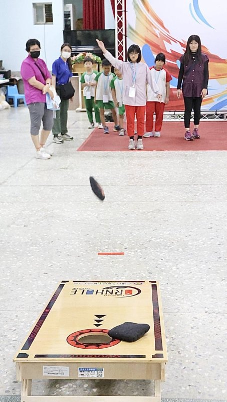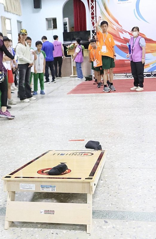 運動會內容結合趣味與挑戰,學生們專注投入「布袋包」拋擲活動,訓練手眼協調與力道控制;「滾球大作戰」則考驗策略與準確度,只要球最接近母球即可得分,場邊不時傳來加油聲與驚呼聲。其他如「跨欄射門小勇士」、「彈力圈圈特攻隊」及「輪椅保齡球大賽」等項目,也讓不同能力的學生都能自在參與,展現自我。