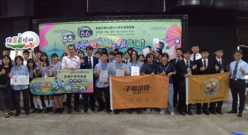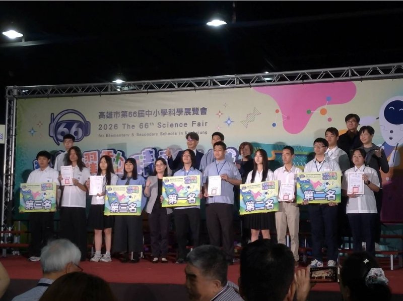 【漾新聞記者陳雯萍/高雄報導】高雄市第66屆中小學科學展覽競賽25日於駁二P2倉庫舉行頒獎典禮,立志高中再創亮眼成績,在高中職組一舉奪下13項獎項,並以總積分榮獲高級中等學校組第三名,僅次於高雄中學與高雄女中,成為全市私立高中唯一擠進前三名的學校,也保持創校以來的紀錄,展現長年深耕科學教育的豐碩成果。