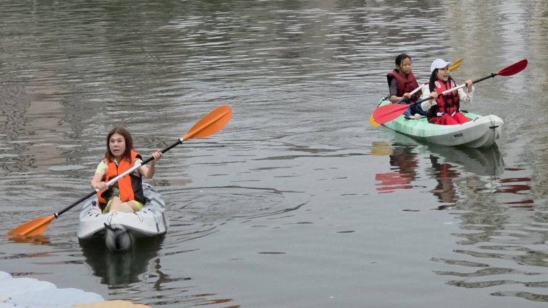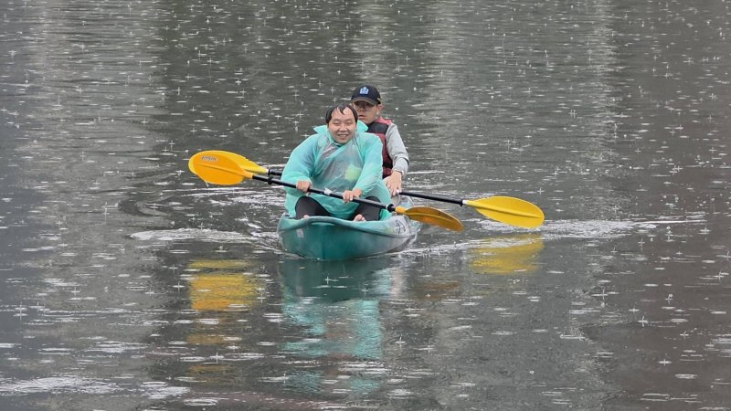 今天還有來自德國與日本的學生,他們都是第一次玩獨木舟,「因為下雨,多少受到一些影響,但整體而言,真的很好玩。」
