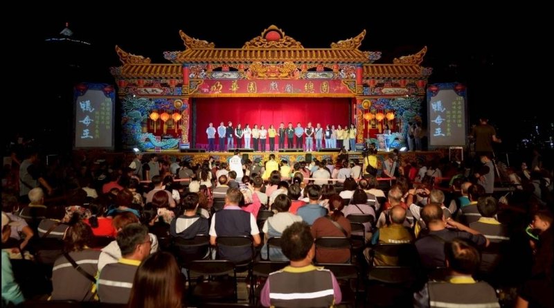 【漾新聞記者陳雯萍/高雄報導】母親節前夕,高雄市議會昨(26)日晚間於高雄市文化中心圓形廣場舉辦「2026年母親節活動」,邀請台灣傳統戲劇天團明華園戲劇總團演出經典大戲《鴨母王》,吸引市民扶老攜幼湧入觀賞,現場座無虛席,戲棚下笑聲與掌聲交織,營造溫馨熱鬧的節慶氛圍。