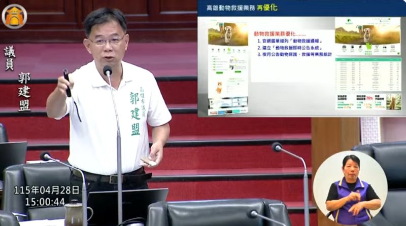 郭建盟也指出,目前動保處官網不易找到1959動物救援通報資訊,民眾若遇到受傷犬貓,第一時間常不知道該從哪裡通報。他要求動保處應在官網首頁明確設置「動物救援通報」專區,讓1959專線與相關通報流程一目了然,避免關鍵時間流失。