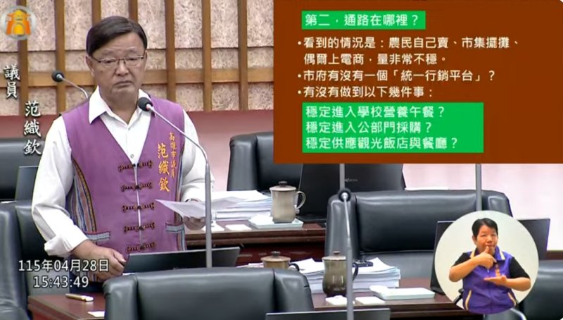 【漾新聞記者陳雯萍/高雄報導】高雄市議會今天(4/28)下午繼續進行農林部門質詢,原民議員范織欽聚焦茂林區災後治水、部落用水與原鄉農產出路,從工程安全到產業尊嚴連番追問,要求高雄市政府水利局、自來水公司與農業局加速處理,讓山區部落不只在颱風季前獲得防災保障,也能讓小米、紅米、樹豆等特色作物走出穩定市場。