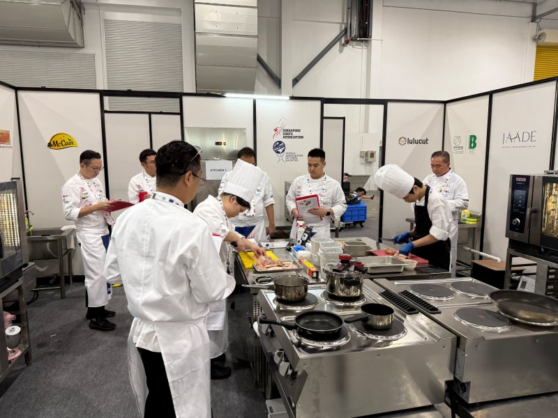 抵達新加坡後,學生更親自走訪當地市場採買食材,在陌生環境中快速適應,理解不同食材特性與文化差異。賽前的準備不只是料理技術,更是一場跨文化的深度學習,透過與各國選手交流,視野悄然拓展,料理語言也更加豐富。