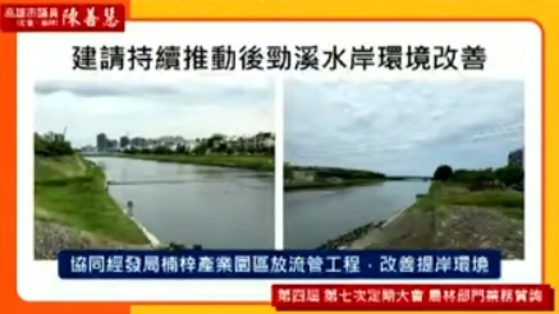 陳善慧並建議,排水改善應同步整合公園修繕、人行道改善及老舊設施更新,處理樹根竄入水溝、人行空間破損等問題,不能只做單點工程,應一次提升整體生活環境。他也要求水利局持續推動後勁溪水岸環境改善,並協同經發局楠梓產業園區放流管工程,兼顧排水安全與水岸景觀品質。