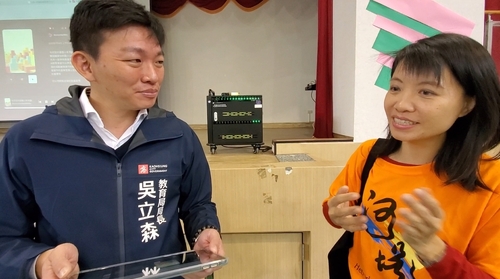 教育局長吳立森也到現場了解小學生如何利用AI生成教育,吳立森說,「AI的運用在教學現場上已是未來的趨勢,鼓勵老師或學生積極參與學習。也感謝河堤國小成功創造一個激發學生英語學習與科技的互動平台,讓學生體驗SDGs環境議題與數位科技融合的力量。