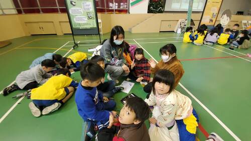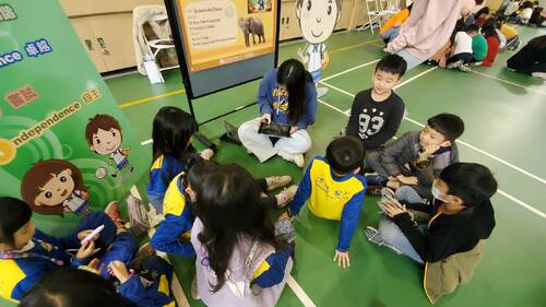 活動以分年級分組的方式,聚焦於全球八種來自不同地區的瀕危物種,包含熊貓、老虎、藍鯨、海龜、亞洲象、樹蛙、企鵝和虎鯨等,在大學生們的指導下,在短短30分鐘內,小組成員互相合作運用英文,創作一首以這些瀕危動物為主題的歌曲歌詞,並設計一幅相關圖像。