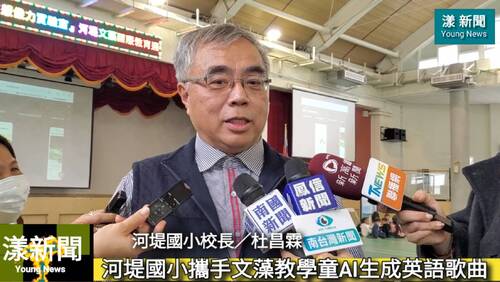 河堤國小校長杜昌霖說,與文藻大學合作的雙語教學,今年已邁入第9年,每一年都以不同的形式進行,今年則呼應永續教育SDGs與AI生成教育為主題,讓全校一到六年級同學,都能夠參與,實際體驗,以創作AI歌曲與圖片的成果。