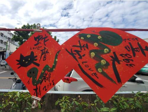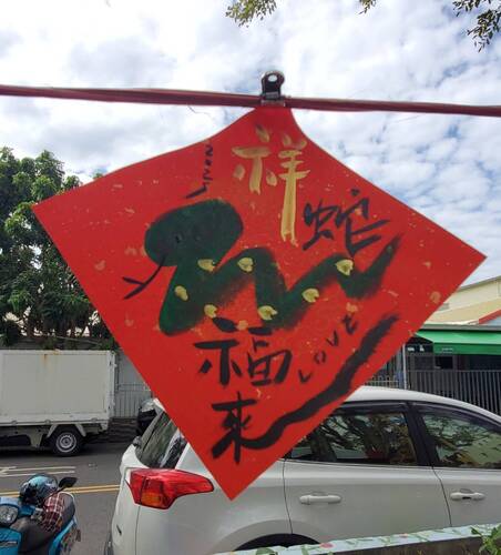 她也指出,新的一年是「金蛇年」,名家揮毫的活動,今年也舉辦五場,分別在4天舉行,除了昨天邀十位名家現場揮毫,受到熱烈歡迎,今天分別在市議員黃香菽服務處與三民區豐裕里里長謝錫元服務處兩地舉行,傳統與創意兩種不同的書寫方式,讓民眾都可以拿到自己最喜歡的春聯。