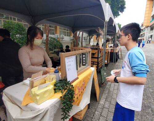 手拿著美食,三年一班的陳宥霖也回答說,「覺得很有收穫」,而且透過闖關可以測試自己的學習成效,很值得!