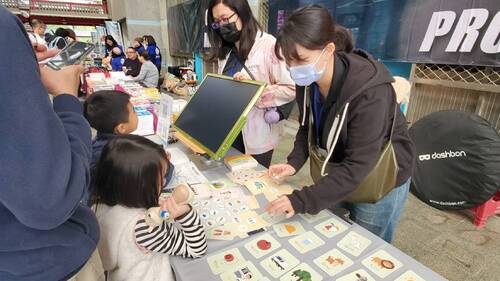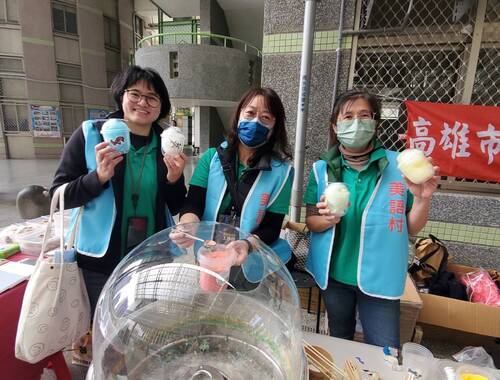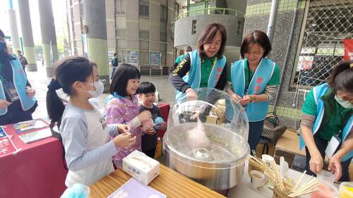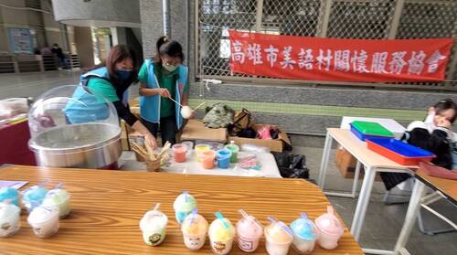 值得一提的是,承辦的高雄市美語村關懷服務協會除了動員20多名學有專精且經驗豐富的老師志工現場協助,也邀請來多家商家、單位,在現場設攤,像是由美語村志工老師現場製作的棉花糖,就受到小朋友的熱烈歡迎,她們都是為了活動而臨時成軍的「棉花糖大師」,只要能帶給孩子們快樂,任何學習與辛苦,她們都甘之如飴。