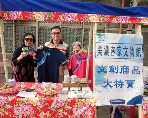 心智圖的涵養,最重要的就是「創意」,而透過「創意」,將客家元素設計成各種實用的生活文創商品,如創意客家藍衫、包包、袋子、馬克杯…等等,高雄市政府客家事務委員會客家文化中心主任林偉鈞就帶領團隊前來設攤,讓小朋友們見證創意如何落實在客家文化元素與文創商品的發揮。