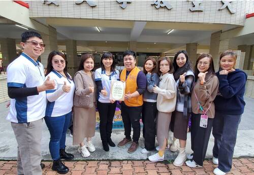 為了辦好這次的食物「一日捐」,大榮中學家長會在總會長林至佳與國中部會長黎懿珍、國小部會長陳惠嫥的帶領下,也製作了一個「食時感恩 大榮愛相隨」的看板。