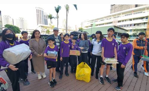 國小部5年B班老師潘斾伃帶著同學們來,除了同學們捐贈自己帶來的物資,令全體家長會委員志工嚇一跳的是,他們班還捐了12750元的善款。老師說,這筆錢是同學們在年末學校辦理的園遊會的義賣所得,經過討論之後,全班決定把這筆錢拿來捐贈。