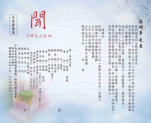 吳俊霆說,決定拔管讓他順順地走,也不想放浪費醫療資源,父親很安詳也沒有遺憾,目前家人討論舉辦簡單追思告別會,日期訂在2月22日早上9時,希望陪父親走最後一段路。