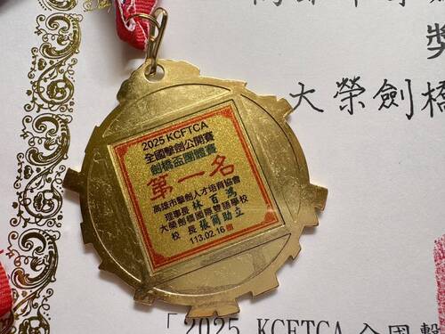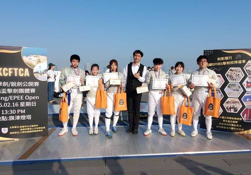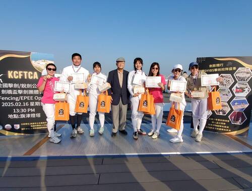 2025KCFTCA全國擊劍賽,2/7日舉行港台聯合賽,2/8日進行全國擊劍公開賽,2/16日則在旗津燈塔舉行首屆的劍橋盃團體賽,包括大榮中學董事長李振登、國小部主任鄭麗滿、大榮中學家長會總會長林至佳、大榮劍橋國際雙語學校家長會長陳惠嫥、左營高中校長,也是高雄市擊劍人才培育協會理事長林百鴻、教練林生祥、協會總幹事唐川、大榮中學活動委員會秘書長李俊成都出席,並上台頒獎,表揚選手們的優秀表現。