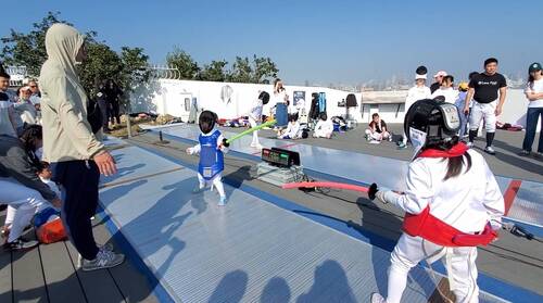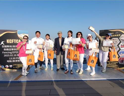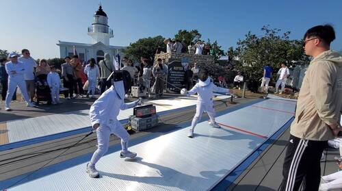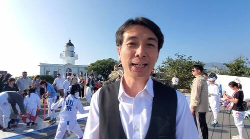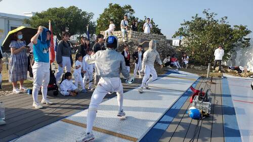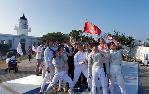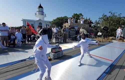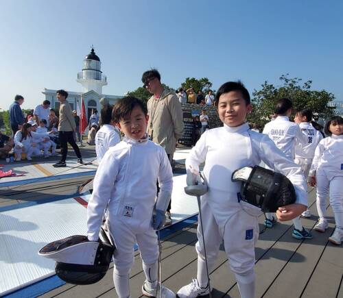 圖/首屆劍橋盃全國擊劍賽旗津燈塔登場,親子同樂揮劍競技。(記者陳雯萍攝)