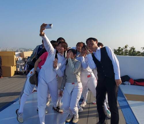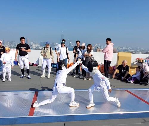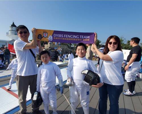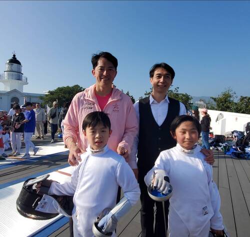 父子一起學的好處?他說:「是可以互相討論,很感謝學校舉辦擊劍社,讓我們可以一起學習姿勢與技巧。而擊劍要先出手才能知道對手要出什麼招,必須要勇敢,小孩子學這個非常棒,他會讓你有勇氣跨出第一步。」