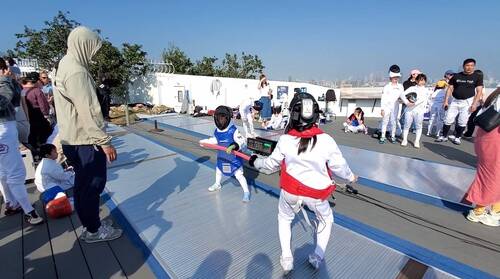 【漾新聞記者陳雯萍/高雄報導】讓擊劍運動向下紮根,同時也訓練學童專注力、穩定性與膽量勇氣!國小學童參與擊劍運動在高雄市已逐漸成為風氣,不僅有越來越多的學童參與,成為生活日常,甚至連父母親也加入,父子檔、母子檔,親子一起運動,親子同樂,也一起健康!