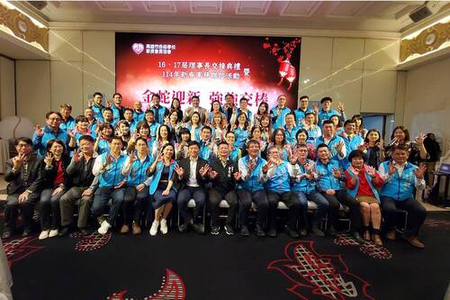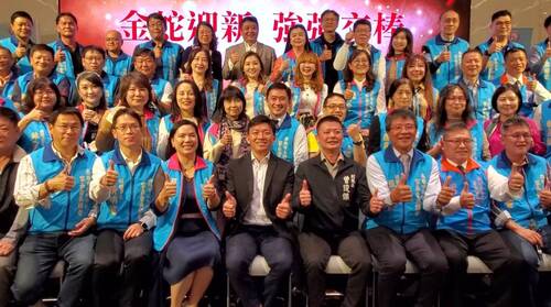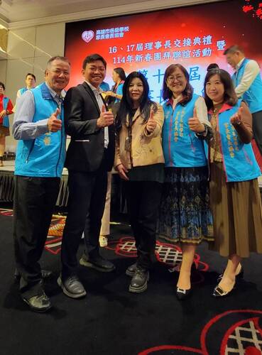 圖/新任理事長蔡淑娟一家人也上台為她獻花,表達對她接棒理事長的全力支持。(記者陳雯萍攝)