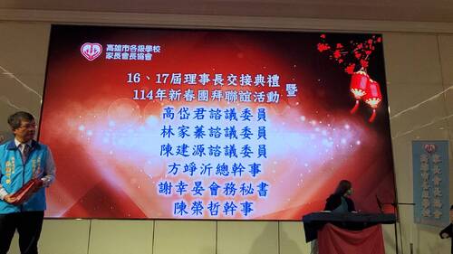 包括高雄市校長協會輔導理事長高瑞賢、高雄市教師職業公會副理事長董書攸、協會總顧問、國際獅子會300E-3區前總監蔡福來,以及遠道而來的澎湖縣各級學校家長會長協會理事長吳國寶等人,也上台致詞祝賀,這歷史性的一刻。