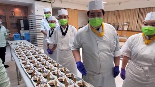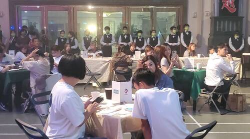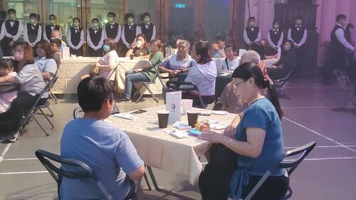 走進立志高中活動中心地下三樓的大禮堂,迎面而來的是穿著制服的餐管科學生進行的外場服務,一句歡迎光臨,拉近了與賓客的距離,隨後引導入座,親切體貼的服務,也讓家長們感受賓至如歸。