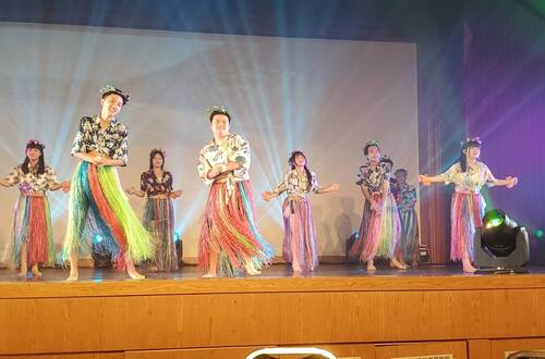 舞台區,則以美容科學生為主,餐管科學生為輔進行精彩演出,有美容科三個年級的人魚、椰風海運草裙PA、沙金的霓裳、芭比變奏曲到紙醉金迷等曲目的表演;並穿插餐管科的武舞旗風及今天不回家的變奏演出。