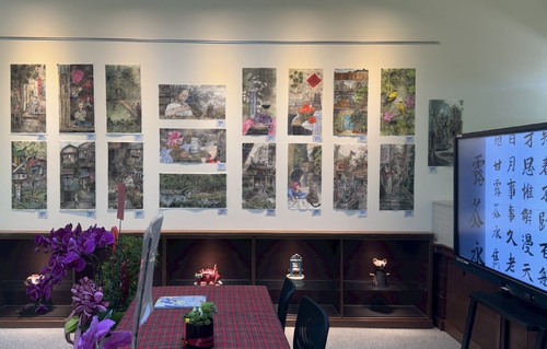 學生張子羿的《深夜麵香》以版畫表達對父親默默付出的敬意,他說:「這是為了記錄我父親深夜煮麵的身影,傳遞家的溫暖。」孫崇賀的《花園的老爺爺》則呈現靜謐日常與自然療癒力,「畫中的每一株植物,都是希望與平靜的象徵。」