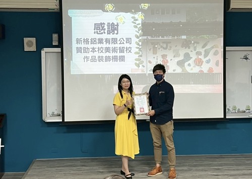 此次展覽由畢業班學生親自規劃與導覽,帶領來賓一窺作品背後的創作歷程與靈感來源。展場中特別設置「墨陶藝境永字牆」,由新格鋁業有限公司總經理郭良宇與課長蔡尚暾捐贈深咖啡與黑色交錯鋁格柵,鋁的堅硬與藝術的柔美在此完美交織,突顯企業對藝教發展的實質支持。