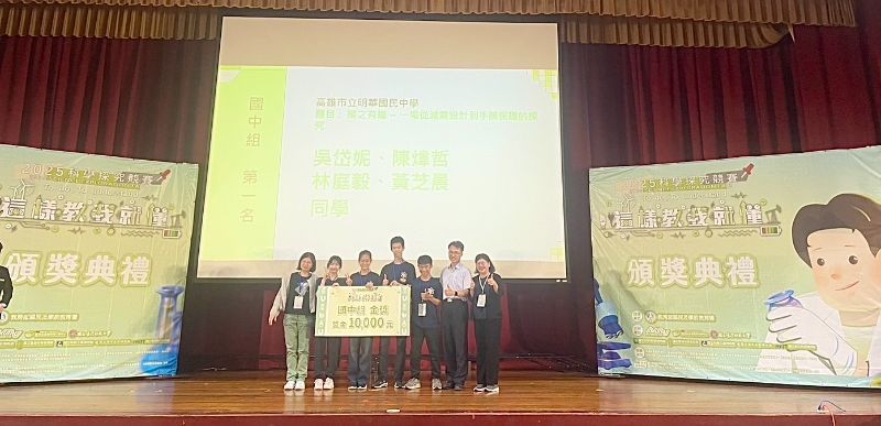 【漾新聞記者陳雯萍/高雄報導】備受矚目全國最大的2025年全國「科學探究競賽-這樣教我就懂」決賽今(14)日於國立臺灣師範大學舉行,來自國內外1,280隊、近3,000名參賽者角逐六大組別獎項,高雄市明華國中勇奪國中組金牌,寫下金牌三連霸紀錄,更一舉拿下1金、1銀、2銅的傲人成績,成為本屆最大贏家,展現高雄學子在科學教育的堅強實力。