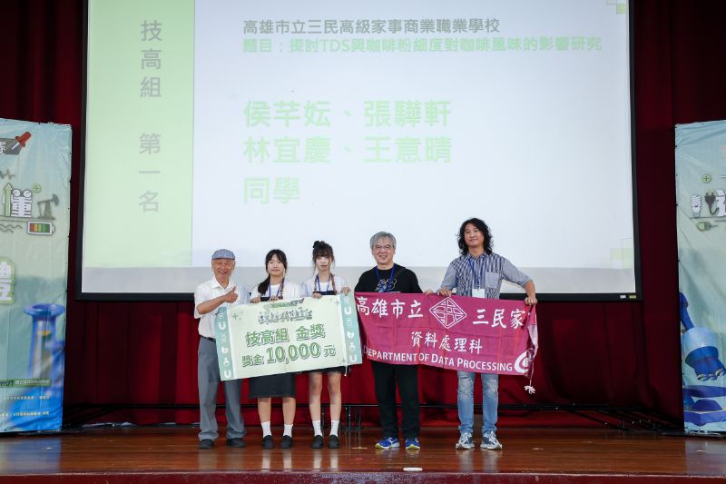 同樣傳捷報的還有三民家商,以「探討TDS與咖啡粉細度對咖啡風味的影響研究」勇奪技高組金牌。學生侯芊妘、張驊軒、林宜慶、王意晴組成研究團隊,在張聖雍、王冠傑指導下,透過控制咖啡粉粒徑與注水條件,探索咖啡風味與萃取濃度的關聯,並優化萃取方式提升風味穩定性,為日常飲品帶來科學提升。