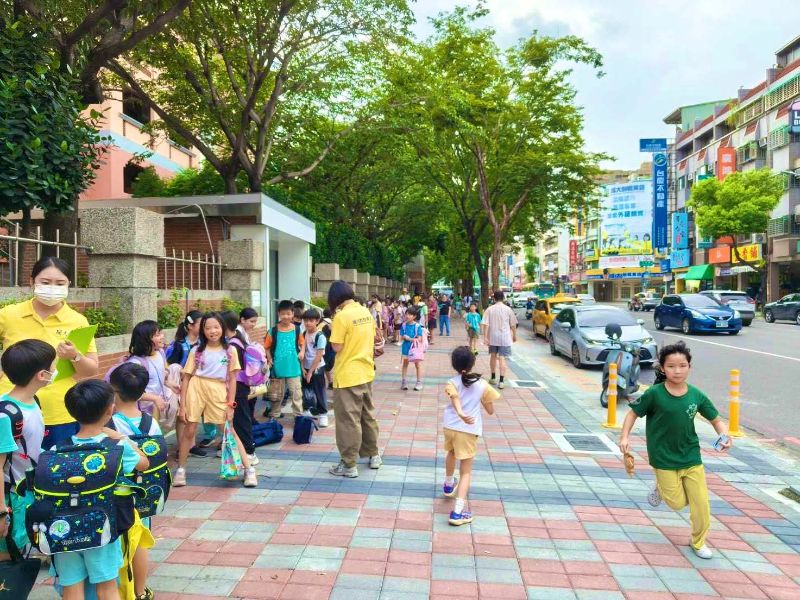 五年級學生劉同學開心表示,以前都只是匆匆走過,現在會在石椅與同學坐著聊天,也常看到附近長輩在此休息,空氣中還會飄著花香,大家都說現在上學路變得很快樂,連爸爸媽媽接送也覺得更安心了。