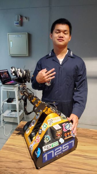 最近也以優異成績,透過特殊選材上榜國立宜蘭大學、聯合大學等四所公私立大學機械系,來自高雄市立志中學高三的蔡承宥,擔任隊長,負責機械結構,在四位成員中年紀最長,而今年18歲的他,也是能參加這項比賽的最後一年,能夠代表國家站上世界舞台,為國爭光,他覺得是無比的榮耀。
