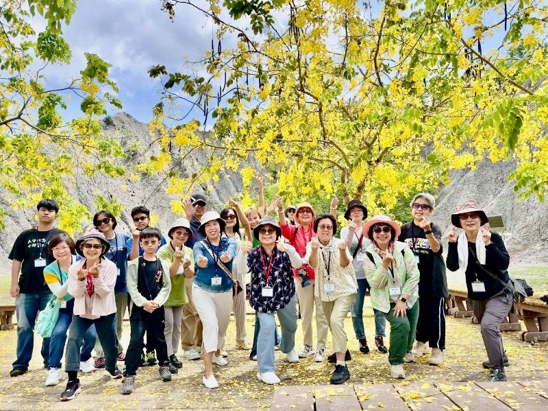 活動由理事長,本身也是高師大工教所博士的陳俊中親自率隊,他感謝USR計畫主持人高師大校長王政彥,攜手共同主持人黃琴扉副教授及其團隊協力籌劃,使行程緊湊有序又充滿深度。行程從月世界地景公園展開,在高師大隊輔引領下,參與者一早進行「身心療癒能量操」,隨著音樂伸展肢體、舒緩壓力,為旅程注入愉悅氛圍。