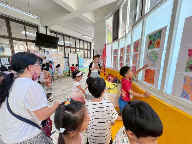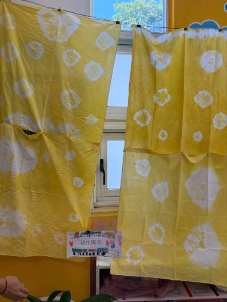 活動一開始由月亮班師生震撼開場,以太鼓與歌謠炒熱氣氛,瞬間引爆全場熱情。成果展由教師余文碧(小余老師)與王美娟(鯨魚老師)聯手策畫,課程橫跨觀察、染布、分類、縫製、拼貼與體能遊戲等多元面向,並在張采昀老師與陳鳳枝老師的協力下,讓孩子們從生活中發現「布」的魔法,在遊戲與實作中激發創意與解決問題的能力。