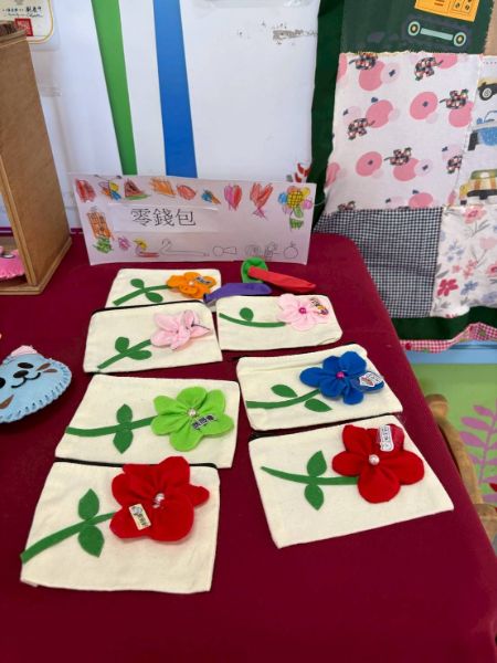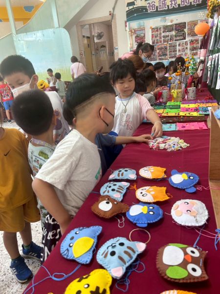 展覽現場精彩連連,不織布背包、碎布蝴蝶髮飾、飲料提袋、零錢包、筆筒、愛心針縫與「畢業祝福拼被」等作品琳瑯滿目,令人目不暇給。最驚喜的是,每位小朋友都變身解說員,親自為來賓介紹自己如何挑布、設計與縫製,一句「我自己縫的唷!」搭配燦笑,瞬間收服現場無數家長的心。