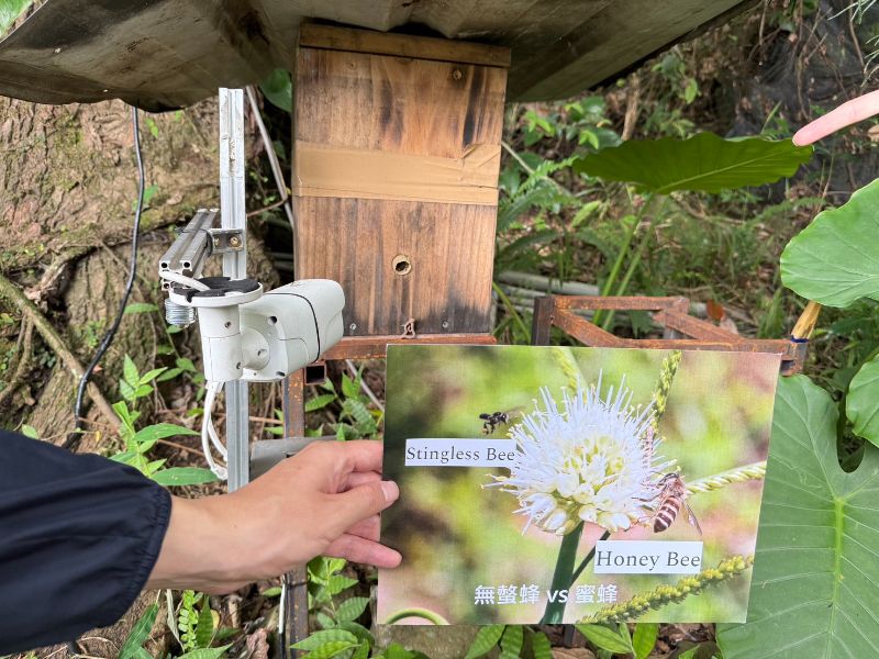 林楷軒在李秉衡陪同下參觀無螫蜂復育場域,親身體驗蜂蜜採收與誘蜂箱製作。從AI技術到蜂群生態,處處展現迎蜂融合自然保育與原民文化的努力。他指出,這樣的創業模式不僅體現環境永續,更展現青年創業多元與跨域的力量。